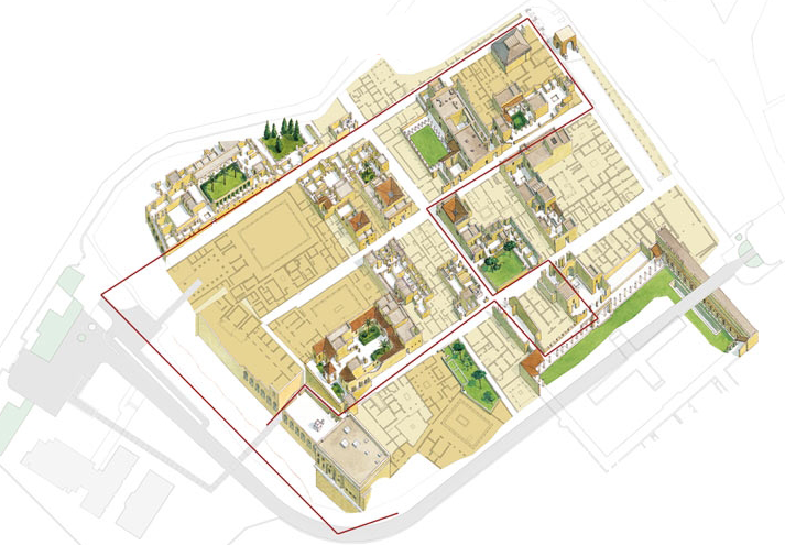 El área excavada de la ciudad está a 5 hectáreas, Pompeya (40 hectáreas). Hasta ahora tenemos dos decumani (calles norte-sur) y tres Cardines (calles de este a oeste), pero se puede suponer la existencia de al menos dos cardines más y un decumanus, las carreteras están pavimentadas con lava y, a diferencia de Pompeya , no aparecen como se utiliza en las ruedas del carro, presumiblemente debido al acceso limitado debido a las estrechas carreteras que van cuesta abajo hacia el mar.